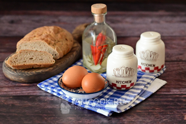 Соберите необходимые продукты для приготовления гоголя-моголя с солью и хлебом.