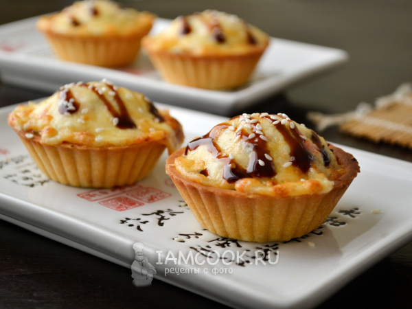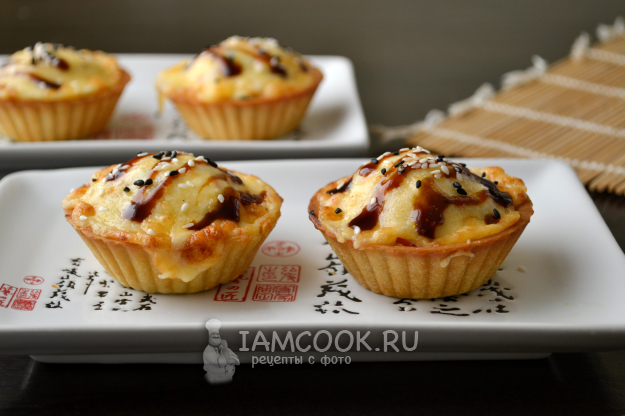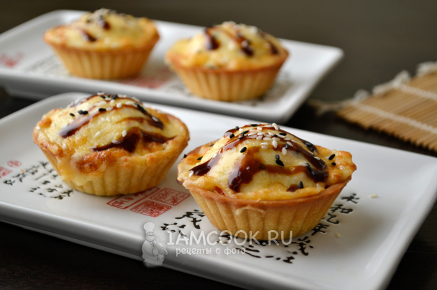 Выньте тарталетки из аэрогриля, нанесите соус Терияки и посыпьте кунжутом.