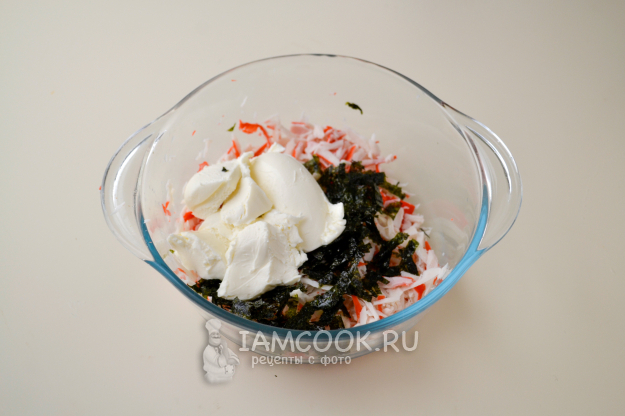Положите сливочный творожный сыр.