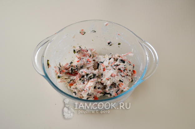 Сырную массу положите на крабовую.