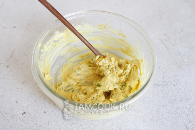 Специально греть масло в микроволновке или в духовке не нужно, иначе испортите вкус. Как только масло станет мягким, нарежьте его на небольшие кусочки и переложите в глубокую миску и слегка взбейте его венчиком или разотрите деревянной ложкой.