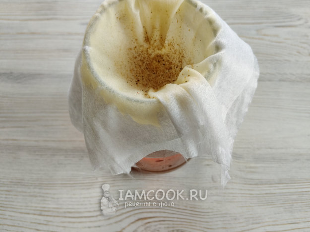 Процедить ее через сито, а затем через марлю или ткань, чтобы убрать мелкие частички.
