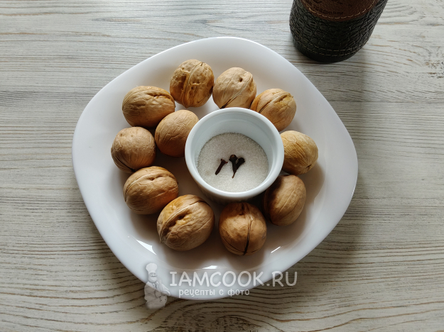 Настойку на грецких орехах на водке я готовила из такого набора продуктов.