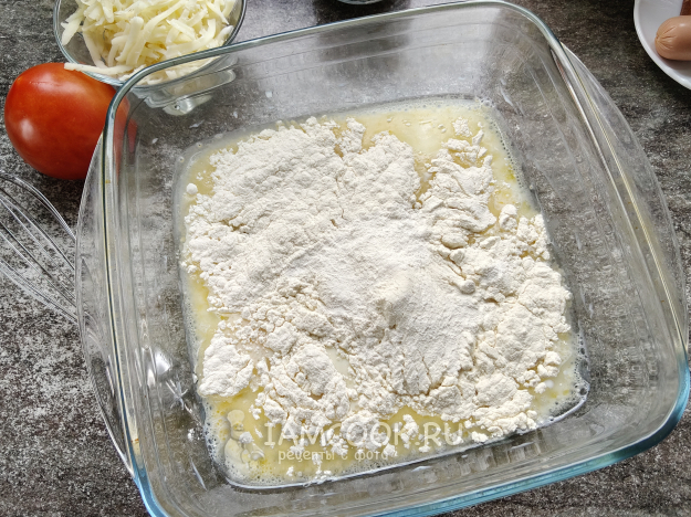 Перемешать, добавить муку и разрыхлитель.
