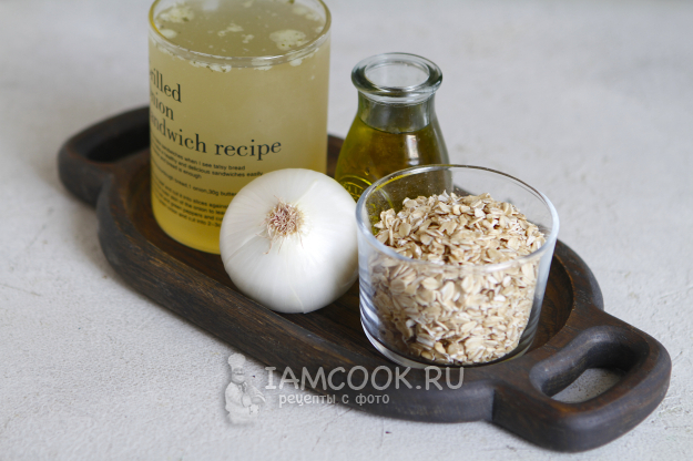 Соберите по списку все продукты для приготовления овсянки на мясном бульоне.