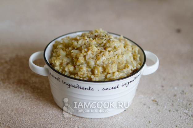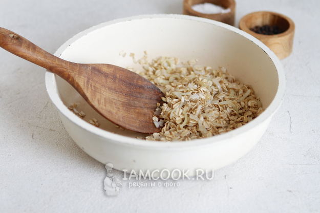 И слегка обжарьте овсянку с луком, до появления легкого орехового аромата.