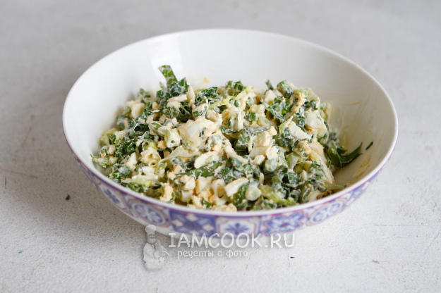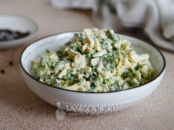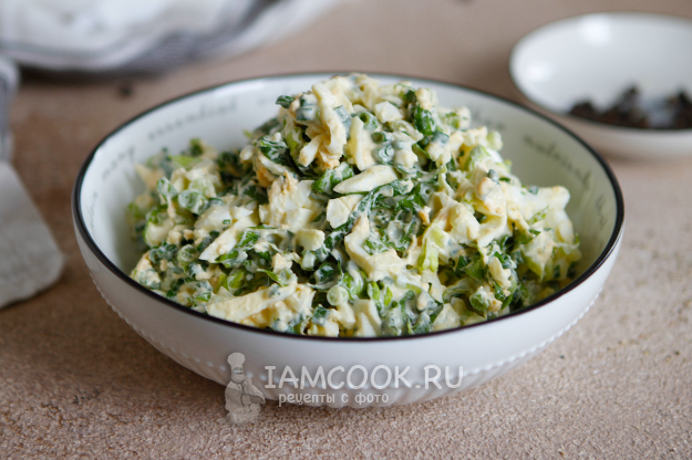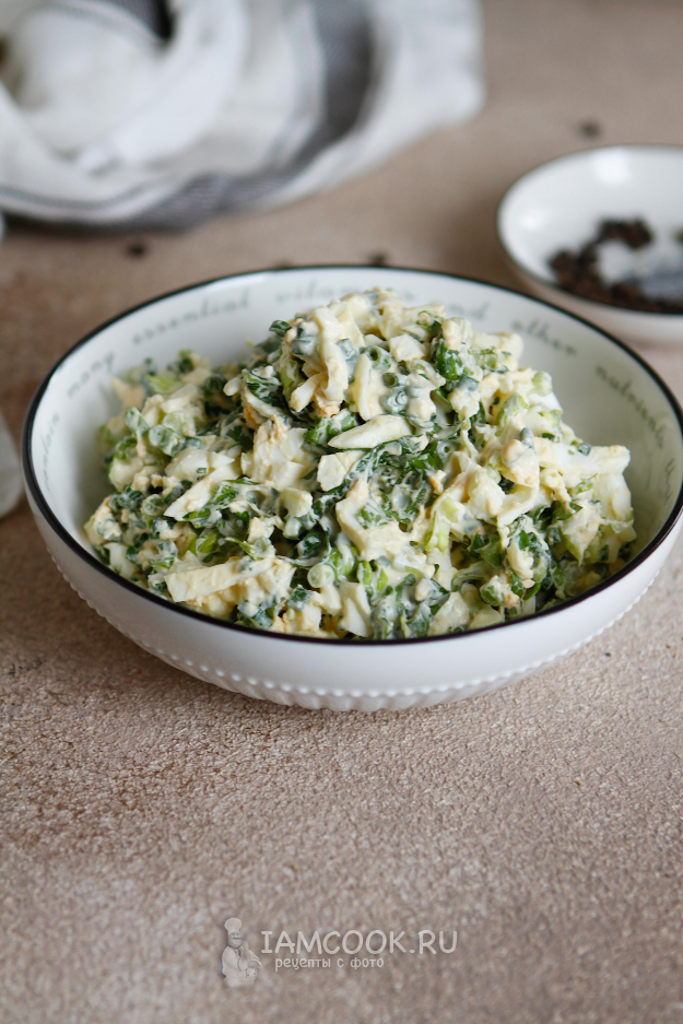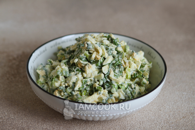 Яичный салат с зеленым луком лучше всего сразу подавать к столу.