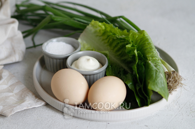 Продукты для приготовления яичного салата с зеленым луком - перед вами.