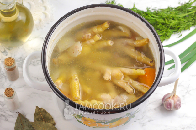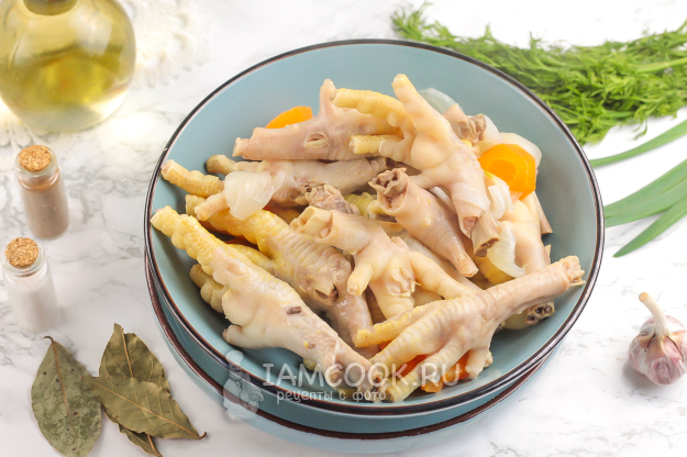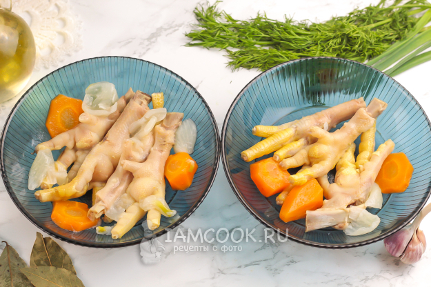 Отварите куриные лапки в течение 1 часа и удалите пергаментную бумагу.