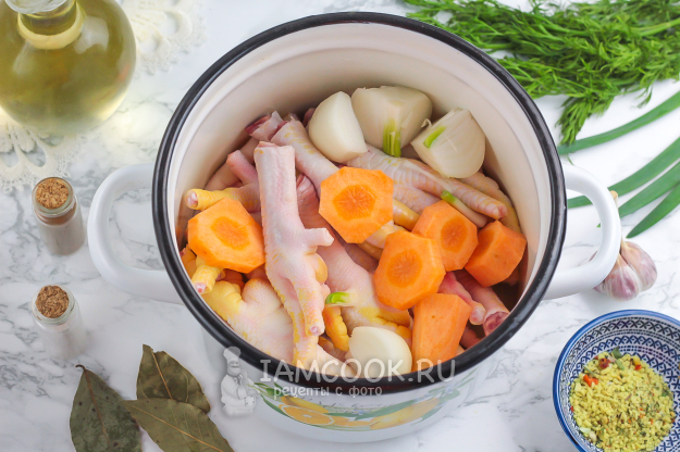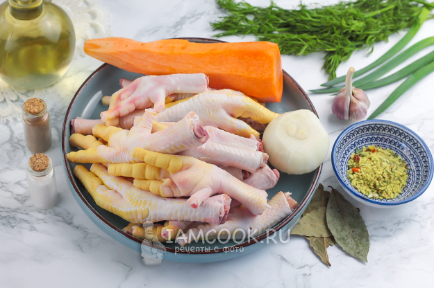 Продукты для приготовления заливного из куриных лап - перед вами!