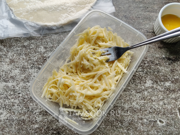Чтобы приготовить хачапури из лепешки роти, надо натереть на терке сыр. Можно взять какой нравится или несколько видов.