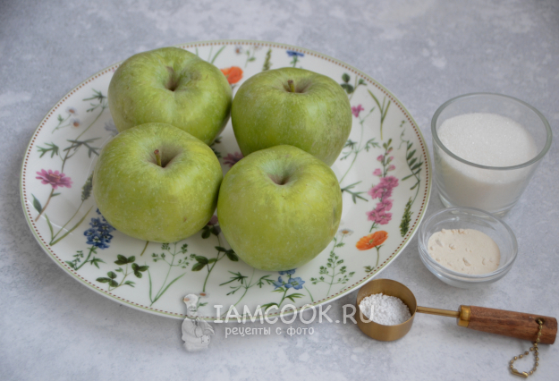 Для приготовления яблочного компоте возьмите 4 яблока, 85 г сахара, 8 г пектина NH и 2 г лимонной кислоты.