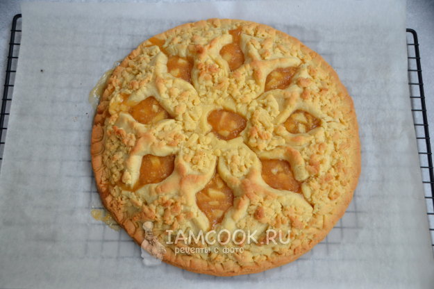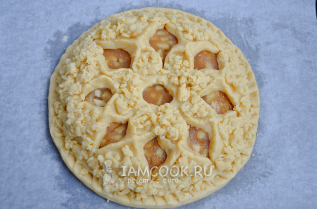 Охлажденное тесто из обрезков натрите на терке, посыпьте ими верх пирога.