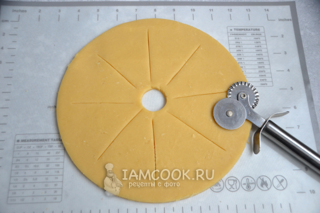 Сделайте 8 надрезов по окружности на равном расстоянии, не доходя до краев с обеих сторон 1,5-2 см.