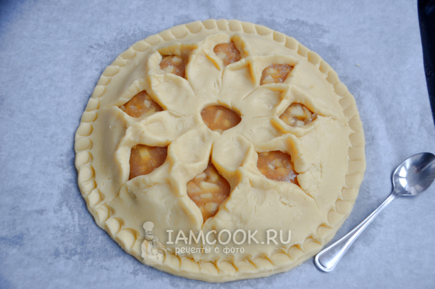 Выпекайте яблочный пай в духовке, разогретой до 180 градусов, около 30 минут.