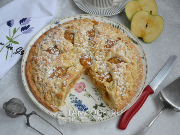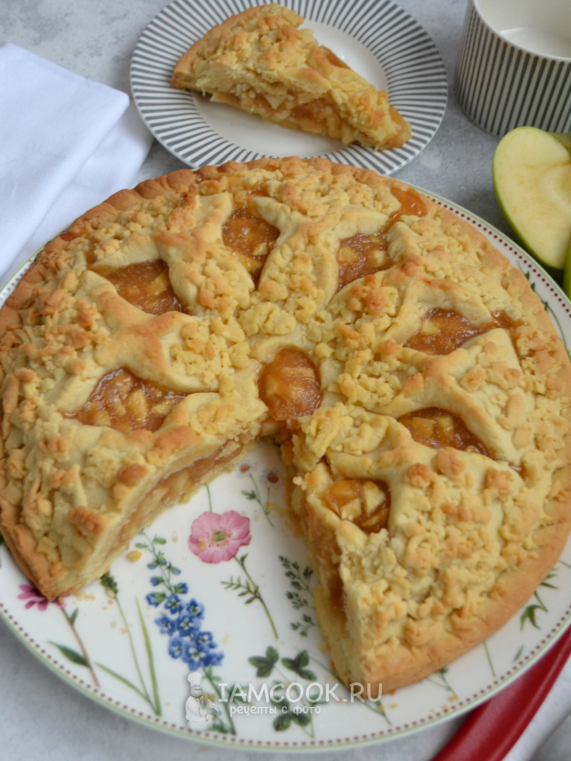 Охлажденный пирог подавайте к столу. Он очень ароматный и вкусный, с насыщенным яблочным вкусом и нежным песочным тестом.