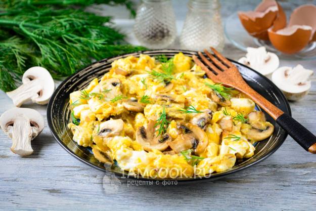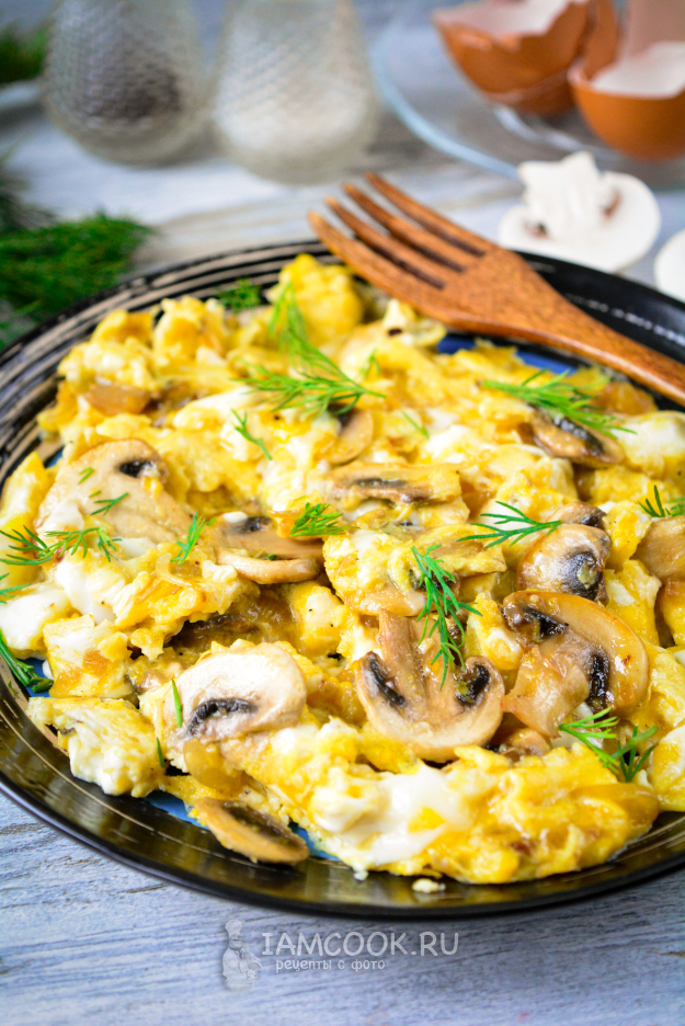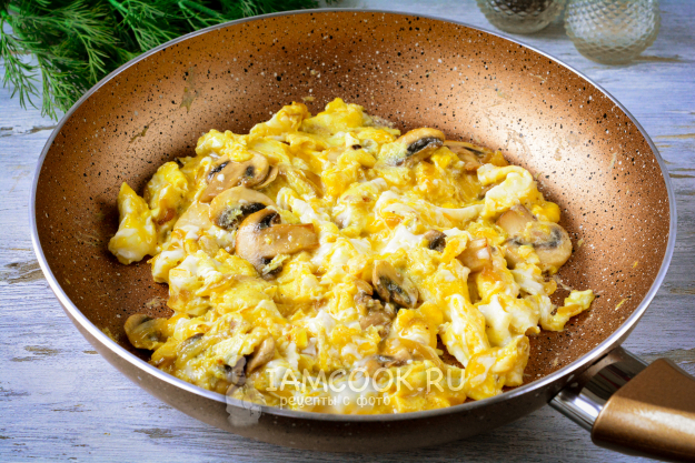 В горячем виде скрэмбл с грибами подавайте к столу.