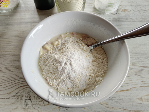 Добавить муку и разрыхлитель.
