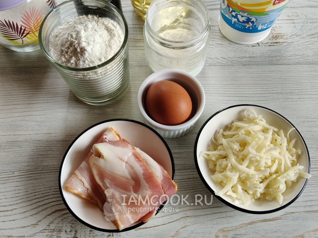 Вафли с беконом и сыром в вафельнице будем готовить из такого набора продуктов.