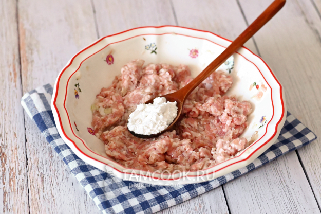 Тщательно вмешайте крахмал в фарш и оставьте его примерно на 10-15 минут, чтобы настоялся.