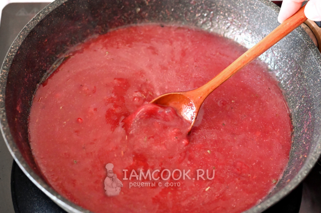 Влейте часть от всего объёма воды и прокипятите соус 7-8 минут.