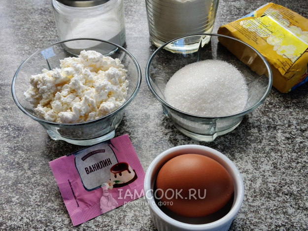 Для приготовления творожного печенья в мультипекаре возьмите необходимые ингредиенты по списку.