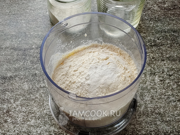 Добавить муку и разрыхлитель.