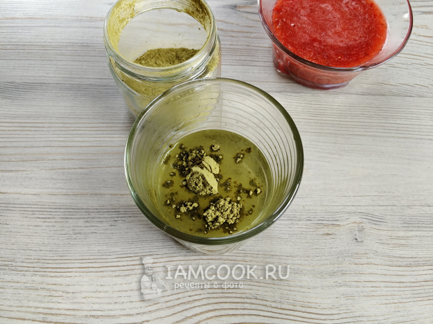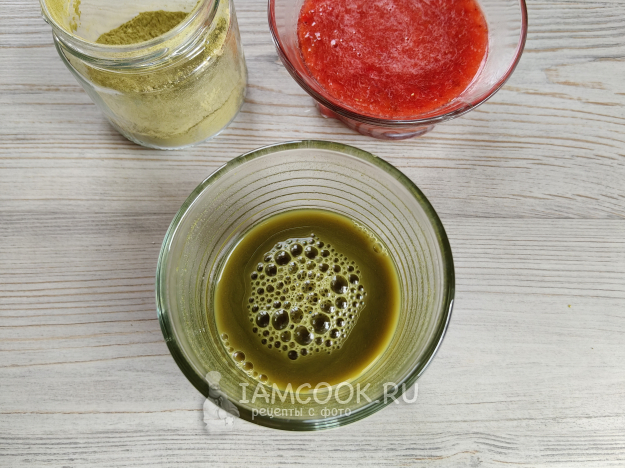 Воду вскипятить, налить нужное количество в стакан, а спустя 5-7 минут добавить матчу.