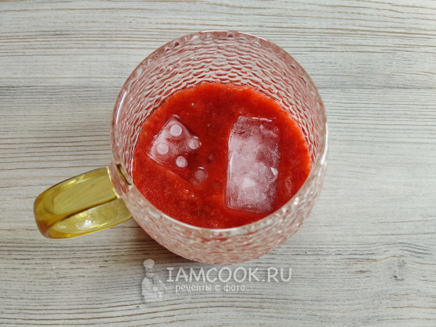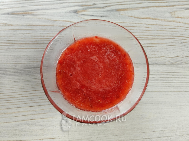 Клубнику с сахаром прогреть на медленном огне до растворения сахара, размять в пюре и остудить.