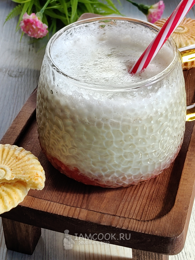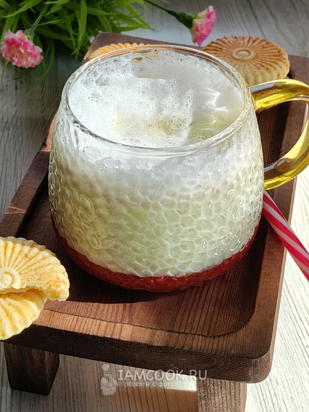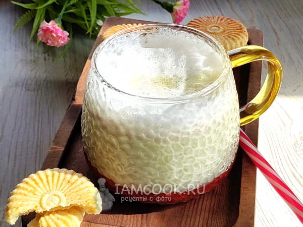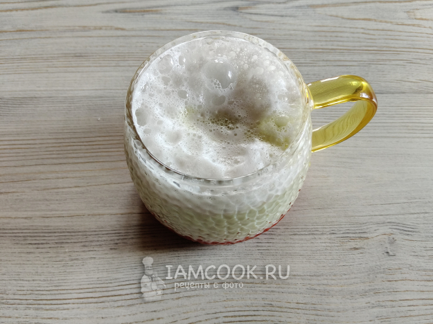 Молоко взбить венчиком/миксером/капучинатором, чтобы была пенка.