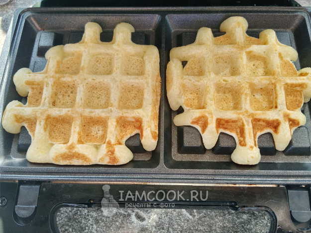 Закрыть и выпекать вафли из манки в вафельнице до легкого румянца.