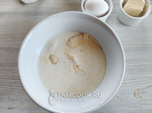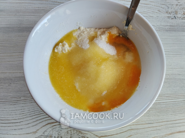Добавить яйцо, сахар, соль и растопленное масло.