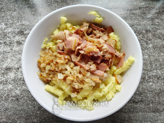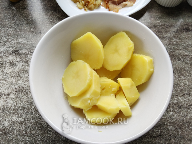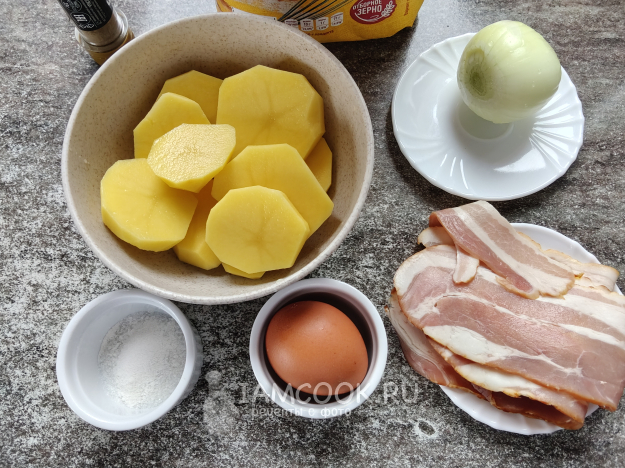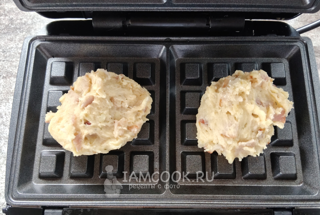 Картофельные вафли с беконом будем готовить из подготовленных продуктов.