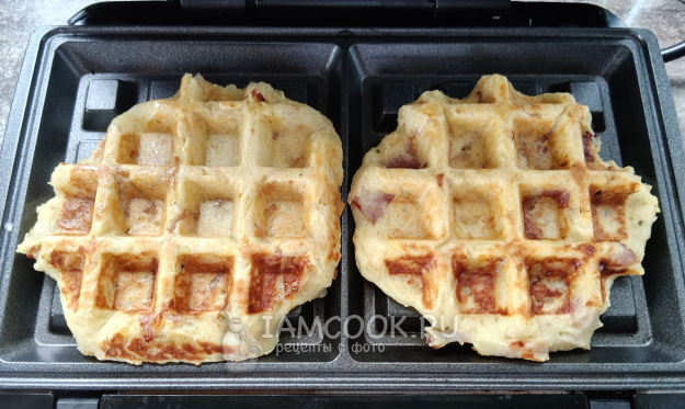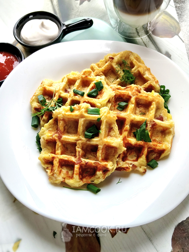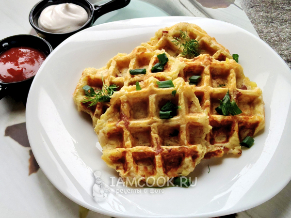 На стол картофельные вафли с беконом можно подать с любимым соусом.