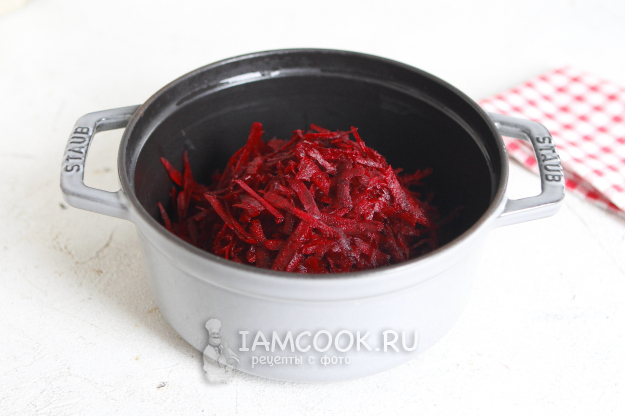 Для окрашивания холодным способом варить свекольный отвар не нужно. Переложите свеклу в кастрюлю.