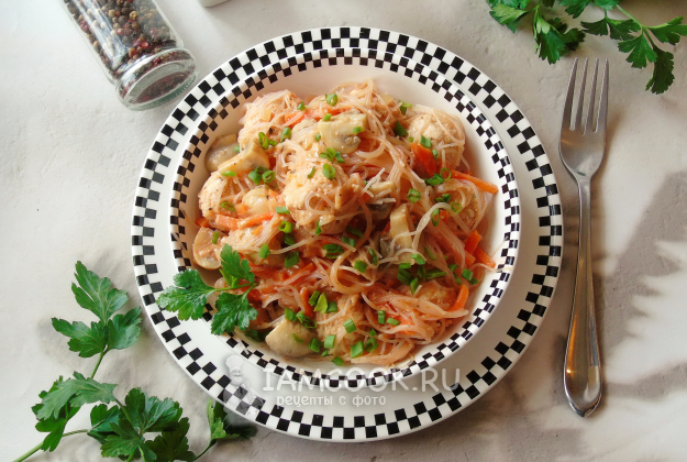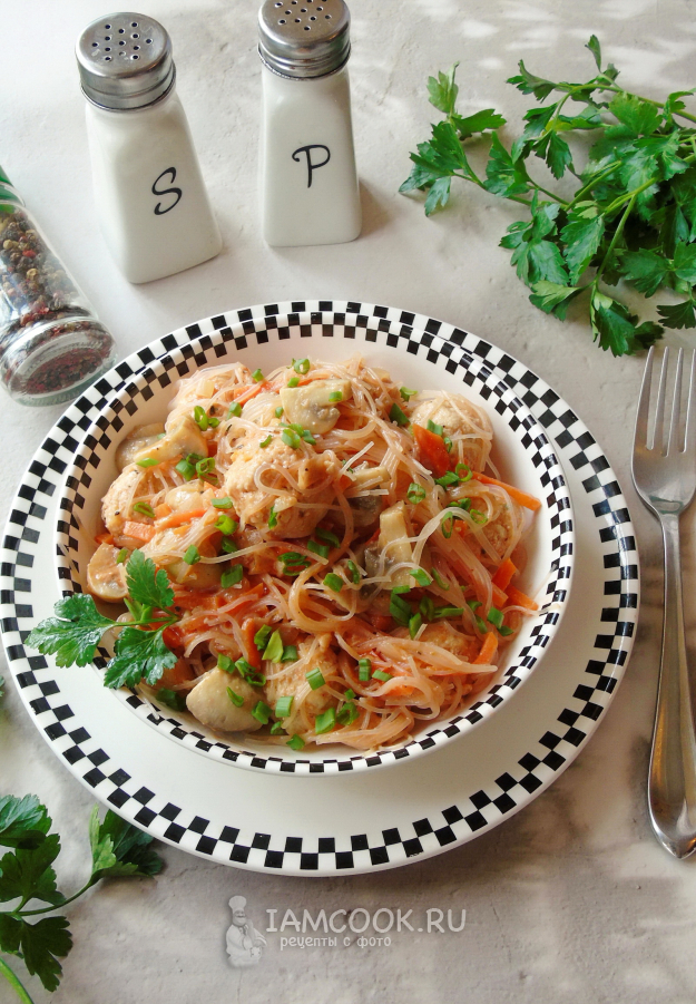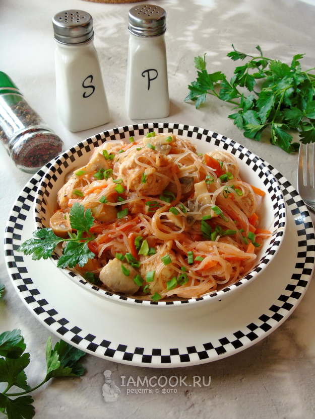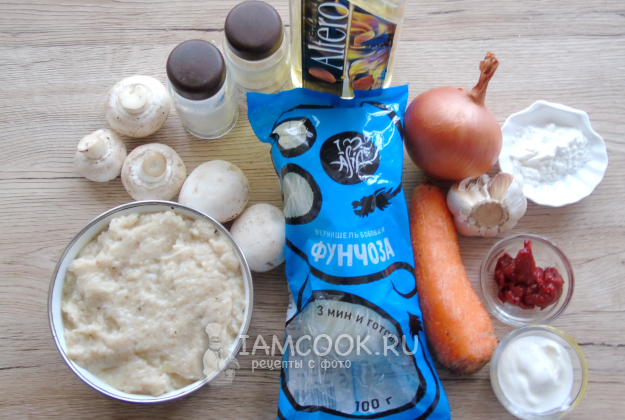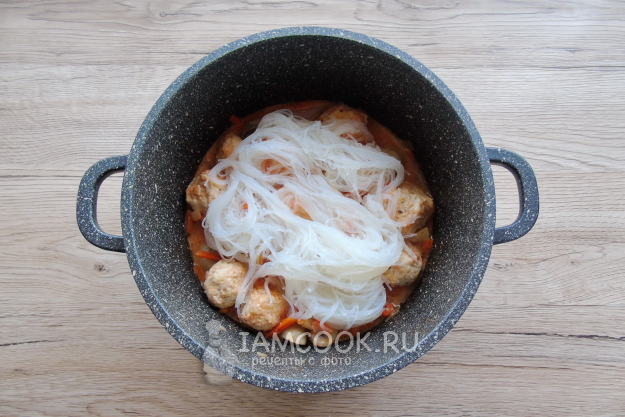 Соберите ингредиенты для приготовления фунчозы с фрикадельками.
