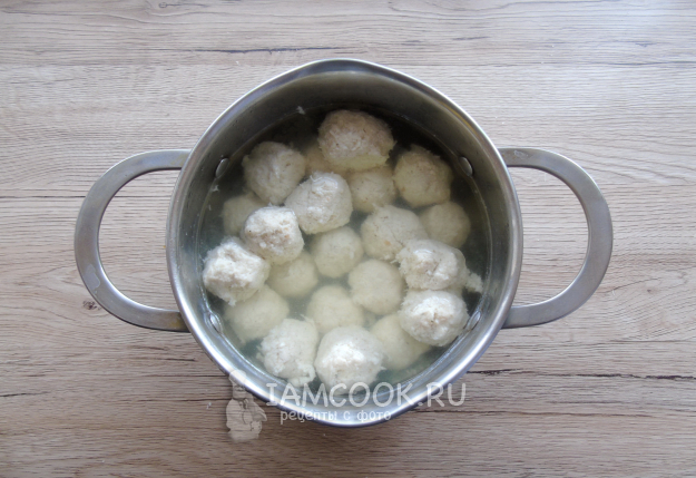 В мясной фарш добавьте соль и перец, перемешайте. Влажными руками сформируйте небольшие фрикадельки и выложите в кастрюлю с подсоленной кипящей водой. Варите 15-12 минут. При желании фрикадельки можно обжарить, но у меня более диетический вариант.