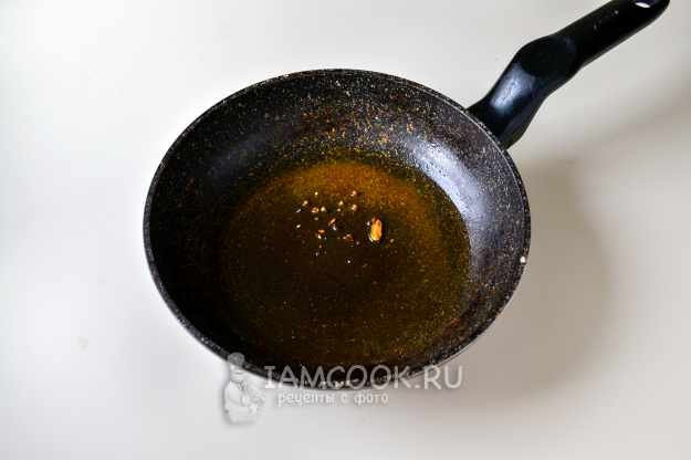 Разогрейте растительное масло в сковороде, положите в него специи. Обжарьте специи 1 минуту, не дольше.