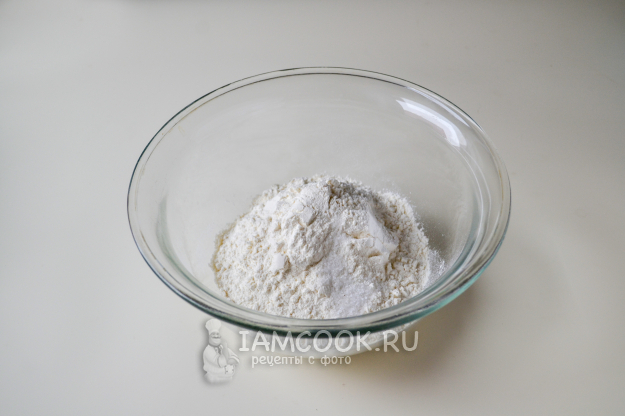 В миску просейте пшеничную муку, добавьте соль.