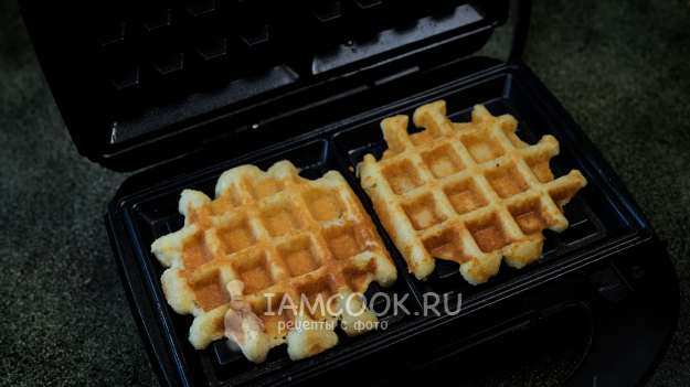 Выпекайте ПП вафли на миндальной муке примерно 3 минуты.