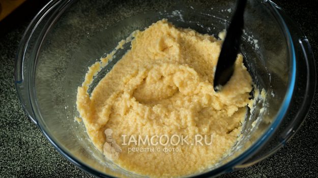 Лопаткой перемешайте все эти ингредиенты до получения однородного теста вязкой консистенции.