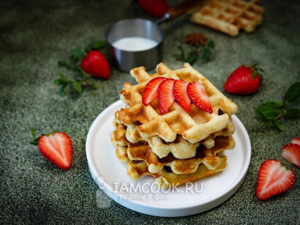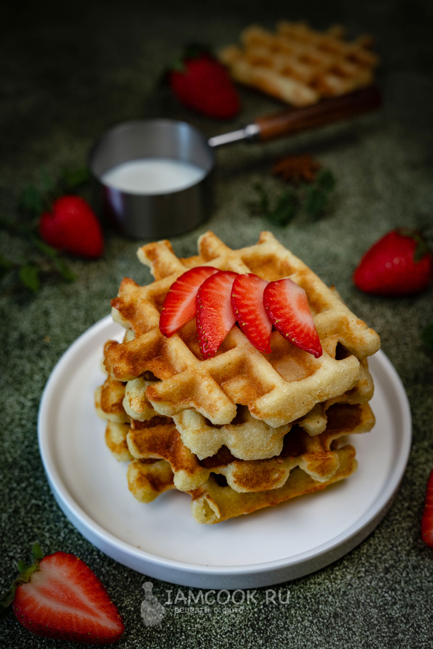 Готовые вафли подавайте к столу с ягодами или кусочками фруктов. Приятного аппетита!