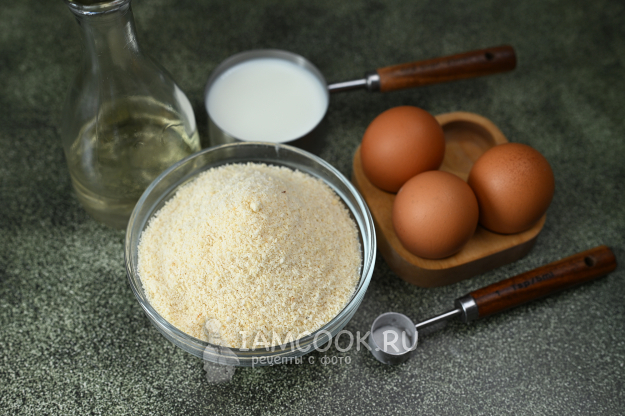 Все необходимые ингредиенты для приготовления ПП вафель на миндальной муке соберите на столе.