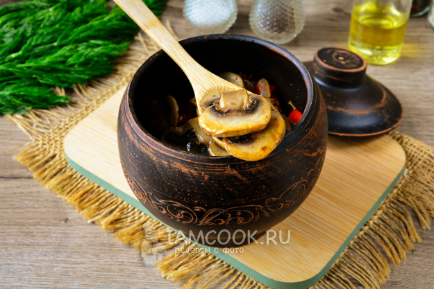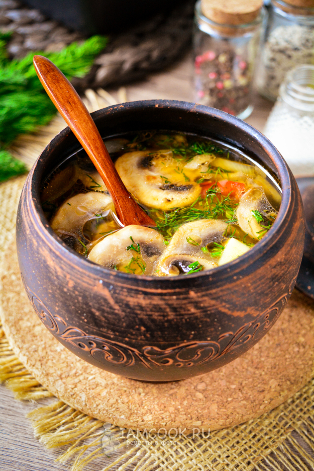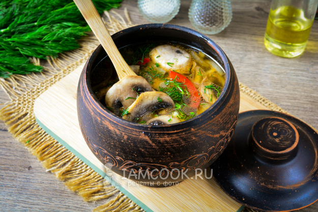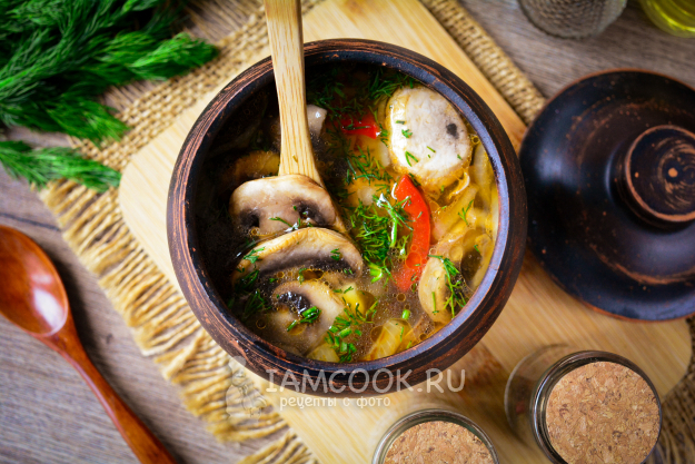 Горячий грибной суп в горшочках подавайте к столу - это очень вкусно и сытно!