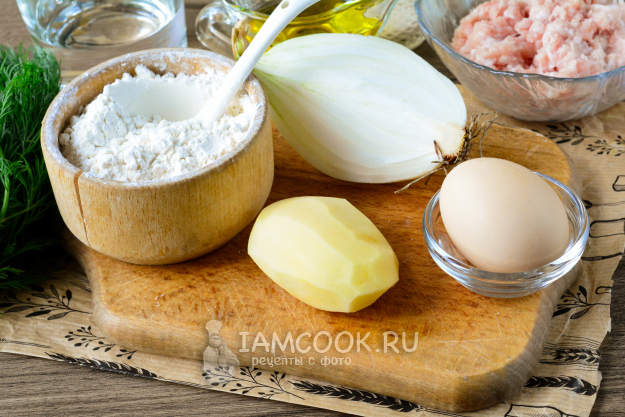 Соберите все ингредиенты для приготовления пельменей с мясом и картошкой.