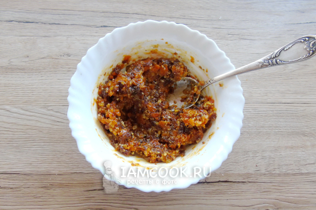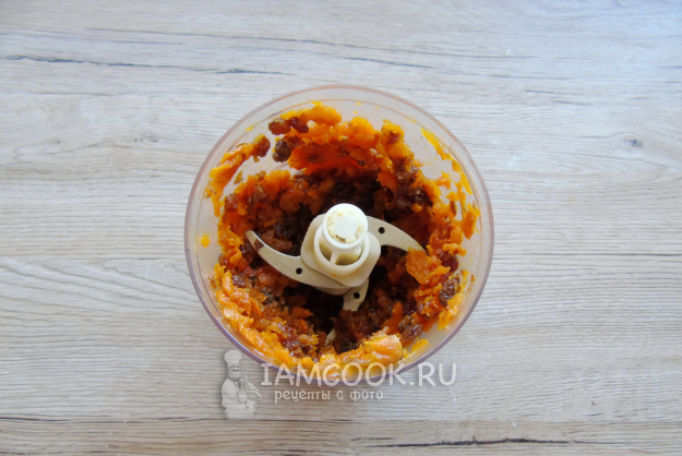 После измельчите в блендере или в кухонном комбайне, или пропустите через мясорубку.