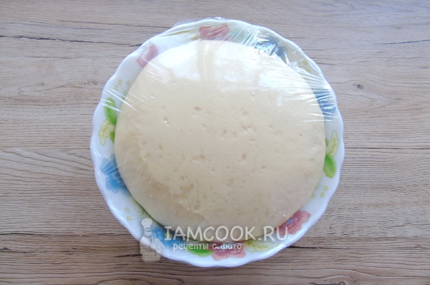 Накройте его пищевой пленкой и поставьте в теплое место. Через час-полтора тесто подойдет и будет готово к работе.
