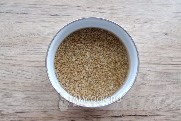 Перловую крупу очень тщательно помойте в 3-4 водах. После выложите в миску и залейте холодной кипяченой водой на 8-9 часов, а лучше на ночь.