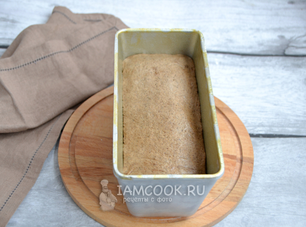 Смажьте растительным маслом форму для выпечки, уложите заготовку хлеба швом вниз. Накройте, поставьте при комнатной температуре на расстойку еще на 30 минут. Разогрейте духовку до 250 градусов.