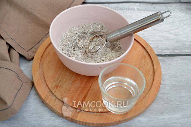 С вечера (за 8-10 часов до замешивания теста) приготовьте опару. Для этого возьмите 75 г ржаной муки, 10 г пшеничной (или ржаной) закваски, 65 г воды комнатной температуры.
